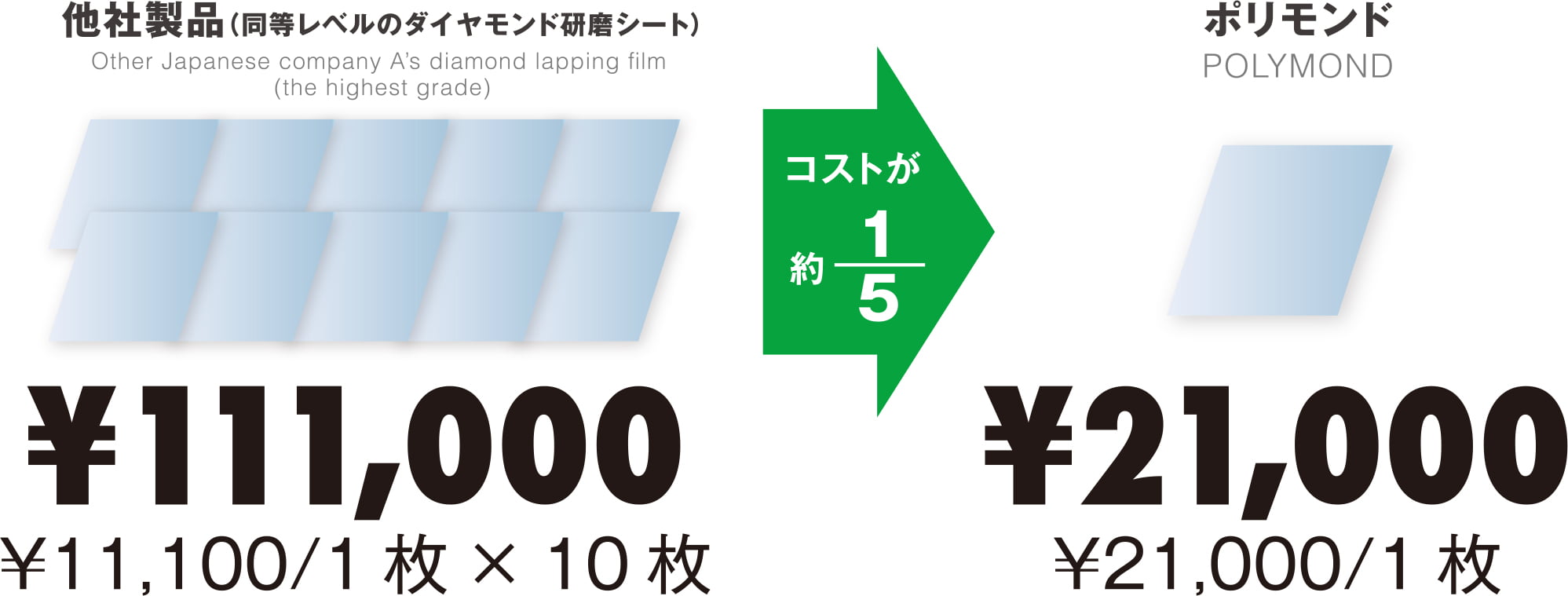 ※上記は、同一 の研磨時間と研磨レー トから比較しており、およそ 90,000 円ものコスト削減が可能になります。
